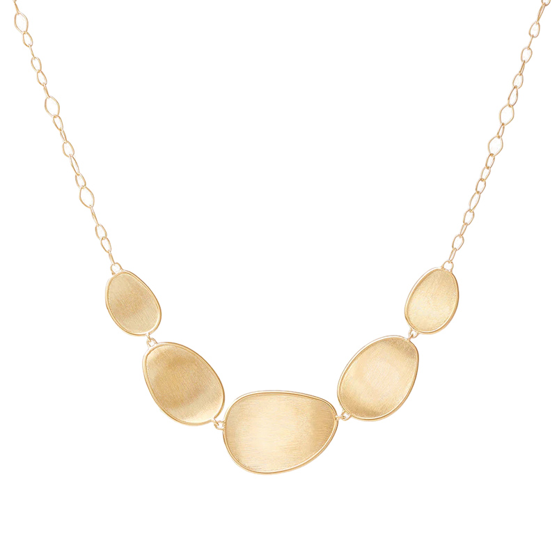 Wer im Winter Wärme und Eleganz verschenken möchte, findet in der Lunaria Halskette von Marco Bicego eine außergewöhnliche Wahl. Feinstes 18-karätiges Gelbgold, von Hand mit dem traditionellen Fadenstichel graviert, verleiht jedem einzelnen Blatt seine charakteristische seidige Oberfläche. Die sanft abgestuften Goldformen erinnern an die natürliche Schönheit der Lunaria-Pflanze und zeugen von der Kunst des italienischen Goldschmiedehandwerks.
